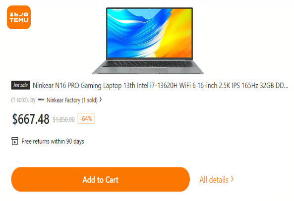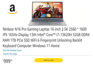 The Ninkear N16 Pro is a robust laptop packed with features that cater to both professional and gaming needs. It sports a large 16-inch IPS display with a resolution of 2560×1600, providing sharp and clear visuals complemented by a smooth 165Hz refresh rate, perfect for high-speed gaming and smooth video playback.